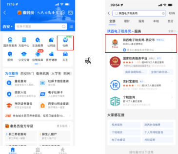1、打开支付宝选择“市民中心-社保”或首页搜索“陕西电子税务局”