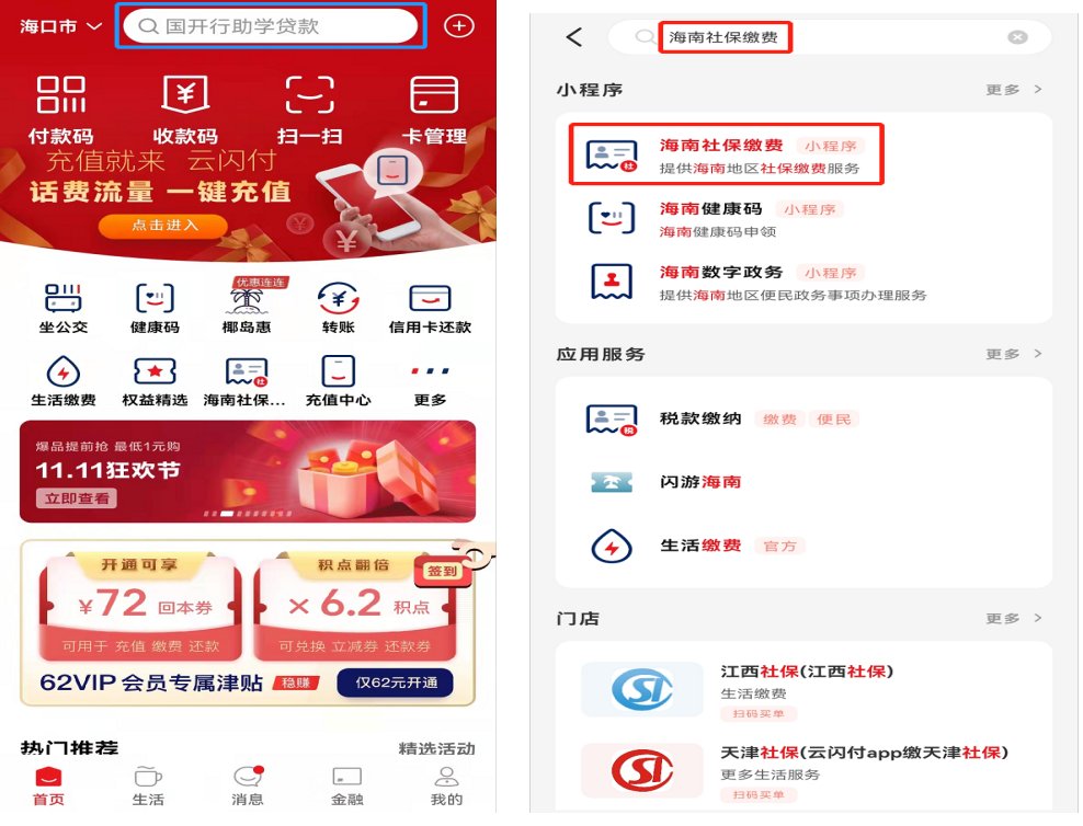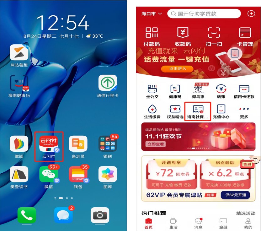 海口灵活就业社保云闪付app缴费流程 云闪付新用户社保卡话费