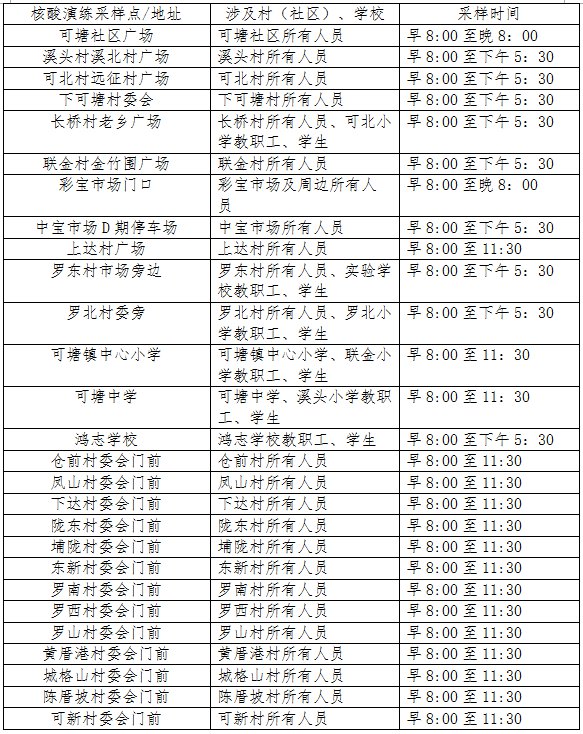 8月26日,汕尾海丰可塘镇疫情防控指挥部办公室发布关于开展可塘镇全员免费核酸筛查演练工作的通知: