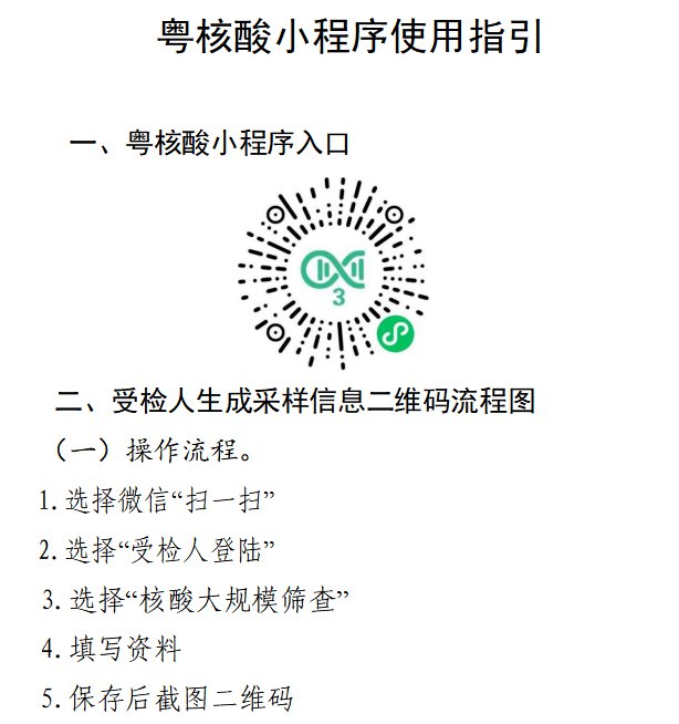 2、检测时请携带身份证,主动出示“粤核酸码”,并全程佩戴口罩,与他人保持1米以上间隔距离,不交谈,不聚集。