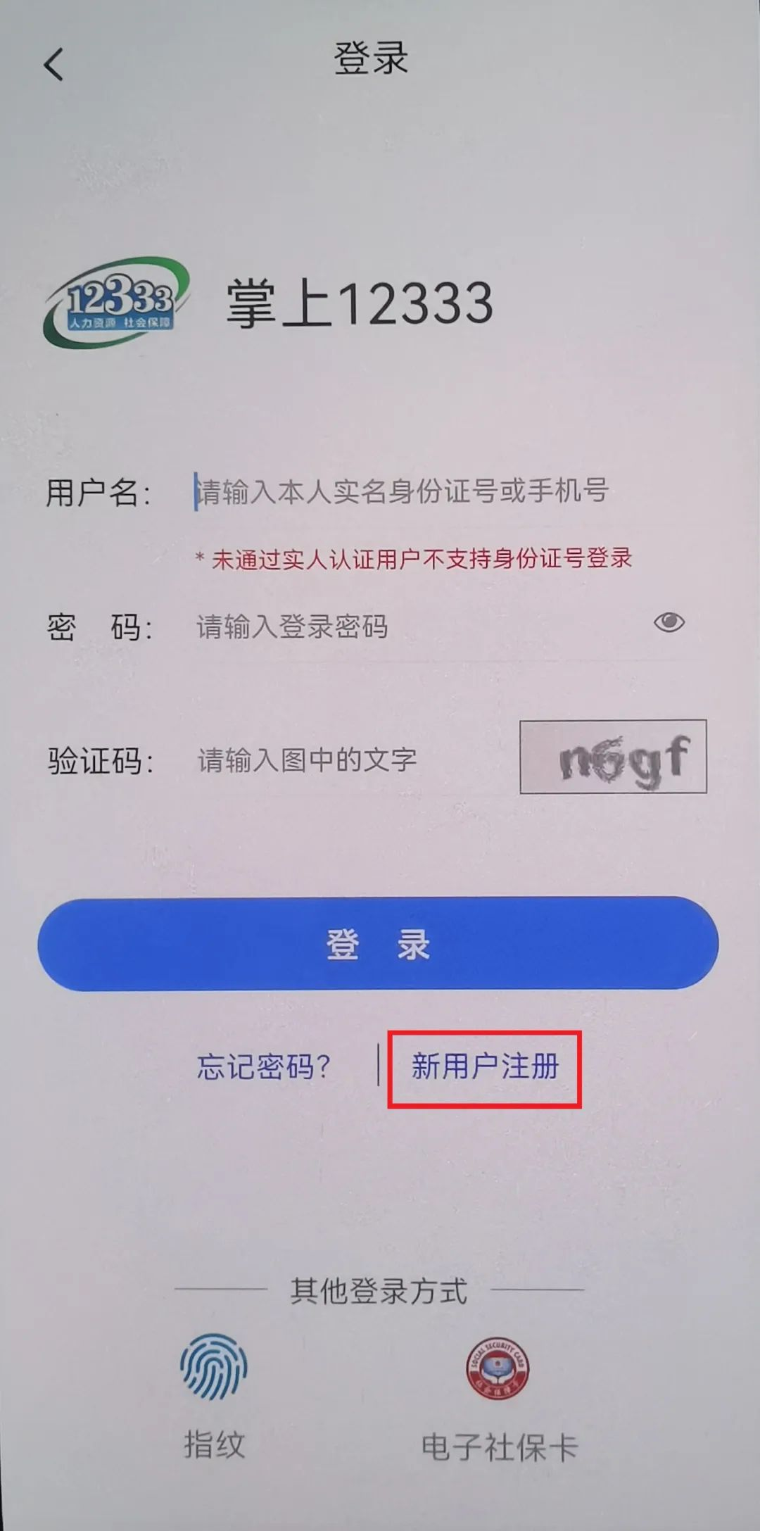 4、新用户需点击[新用户注册]进入注册界面。