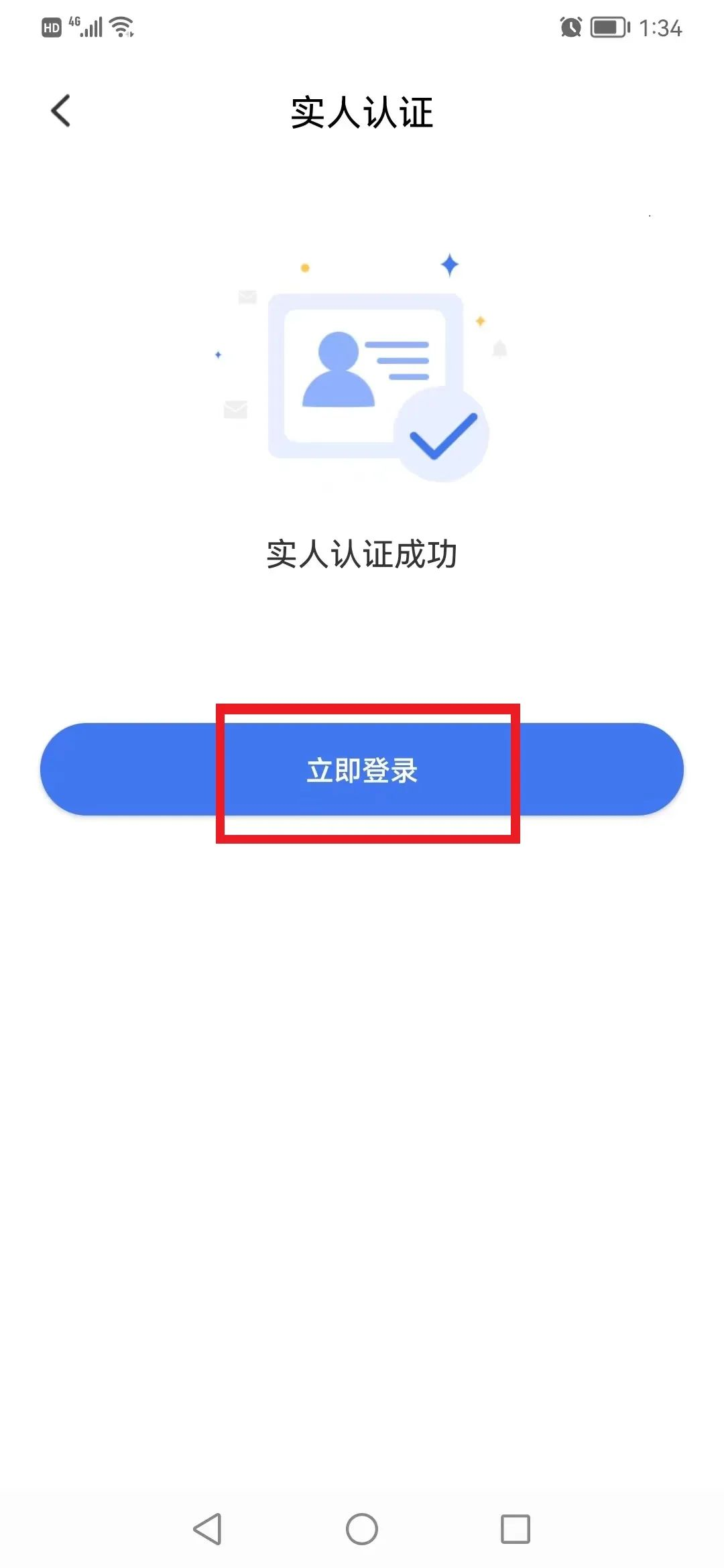 10、显示“实名认证成功”后,点击[立即登录]。