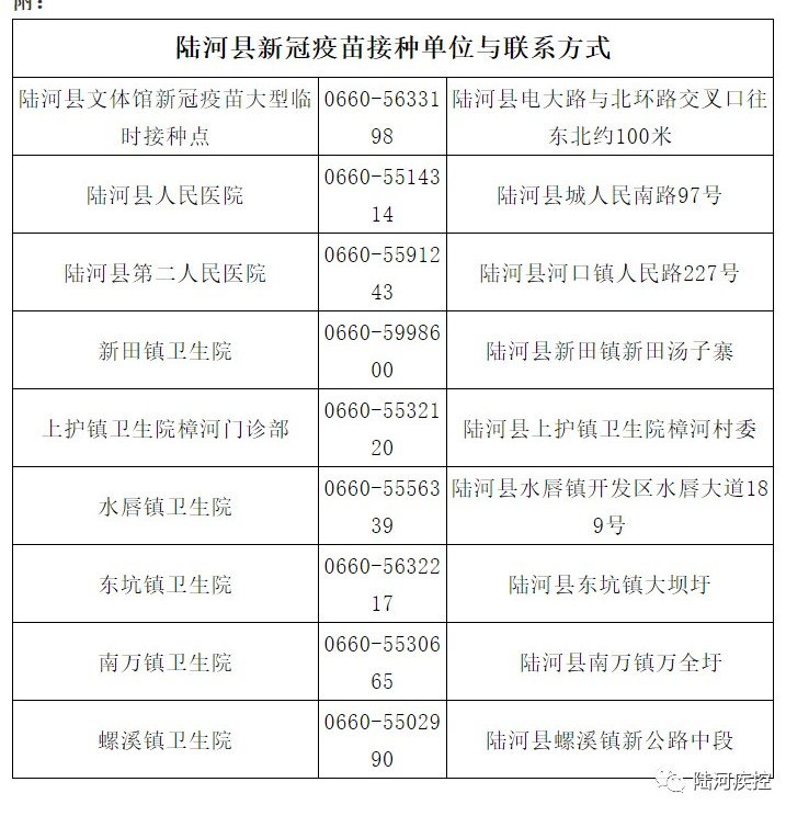 附:陆河县各新冠疫苗接种单位与联系方式
