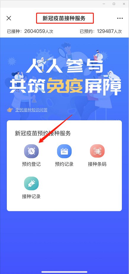 2、进入新冠疫苗接种服务页面,点击—“预约登记”