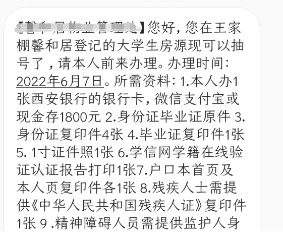 网上申请通过后,会进入大学生公租房轮候库。小区物业工作人员根据名单通知轮候到的申请人,一般会通过短信+电话的形式告知申请人的选房时间和登记所需材料。