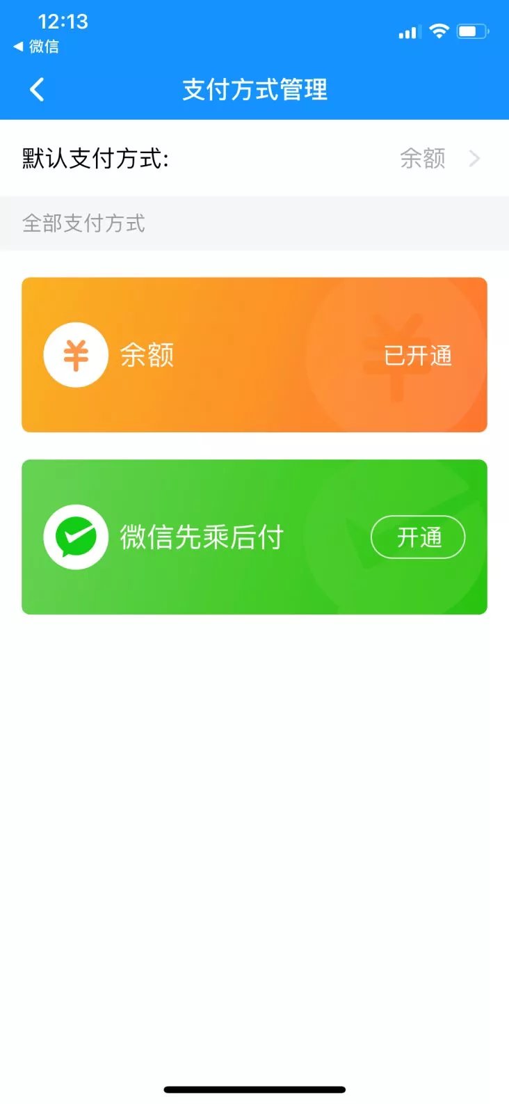 如新用户注册时最开始选择的充值模式之后要切换到先乘后付模式怎么操作?不用担心,点击“我的账户”打开“支付方式管理”,切换为重新开通“先乘后付”功能即可。