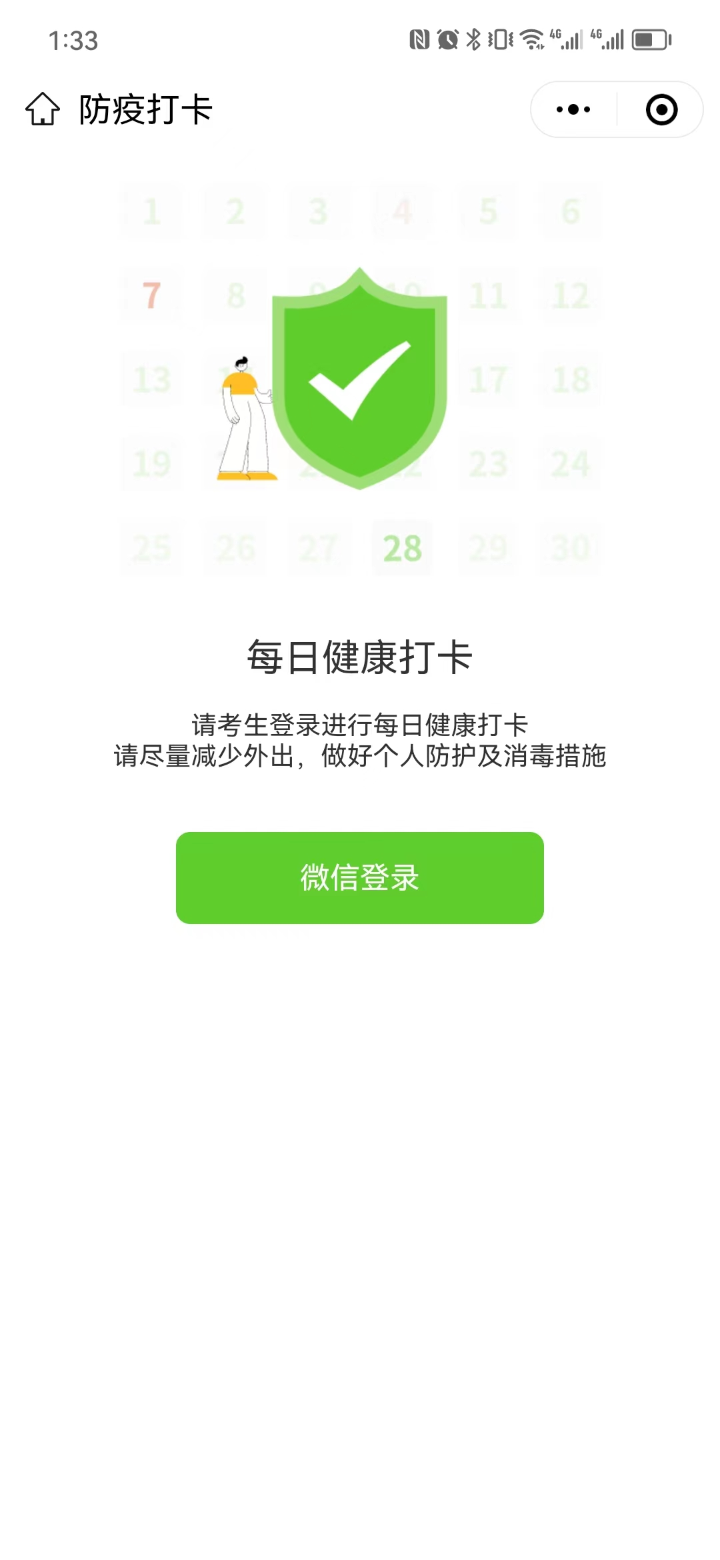 点击扫码进入防疫打卡小程序,点击下方“微信登录”。