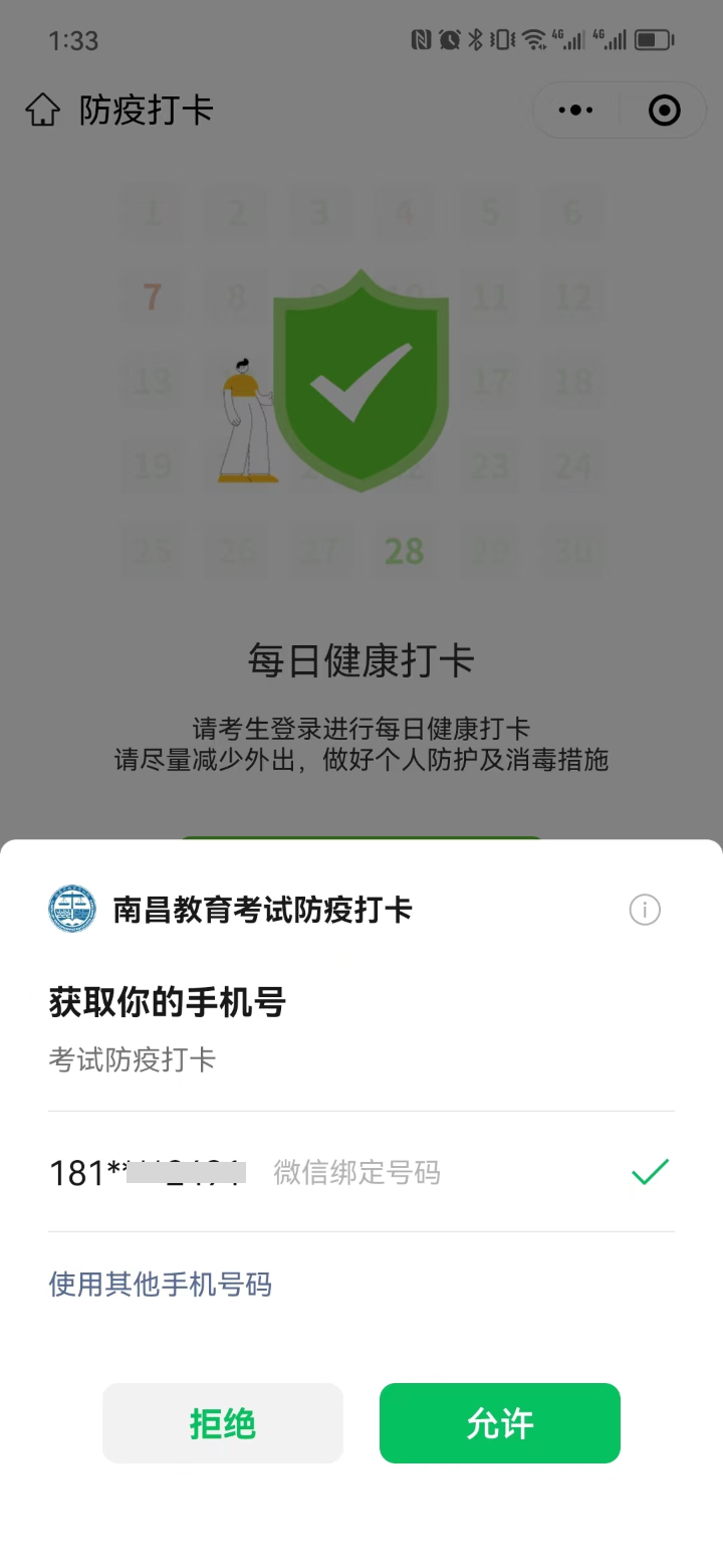 获取微信授权,点击右侧“允许”。绑定微信和手机号每个微信仅能绑定一位考生。