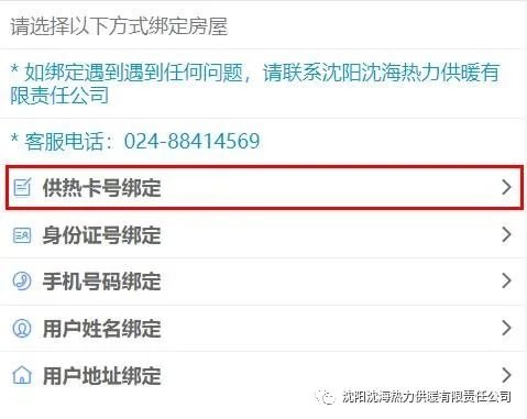 第二步:选择不同的绑定方式,填写相应的信息。(以供热卡号为例)