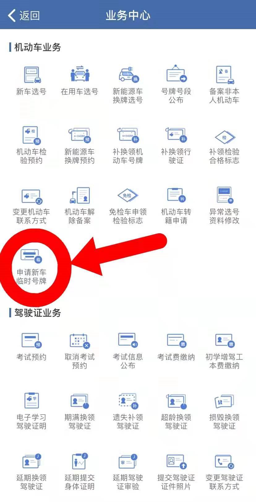 登录“交管12123”(大家下载)APP→点击“更多”→进入到“业务中心”→点击“申请新车临时号牌”→之后按提示步骤操作即可。