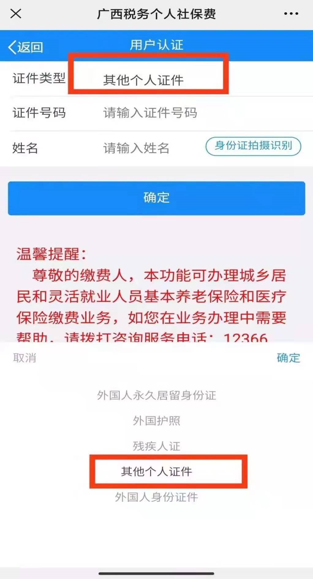 3、输入证件类型和姓名(新生儿预参保登记的证件类型为“其他个人证件”)