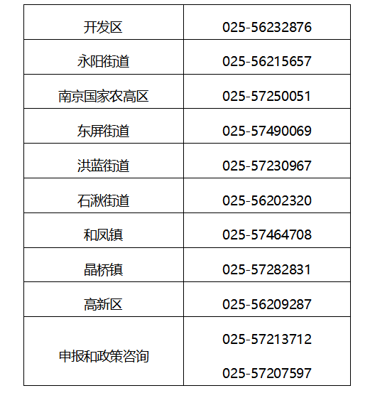 南京溧水区镇(街)、开发区申报咨询和政策咨询电话: