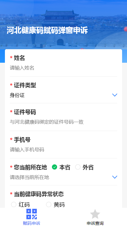申诉平台:“河北健康码赋码弹窗申诉”小程序