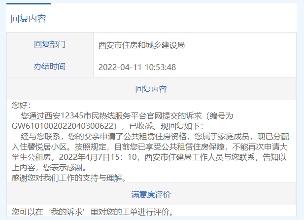 当作为家庭成员参与过西安市本级公租房或其他区县公租房待遇享受后,就不能再申请西安大学生公租房了!