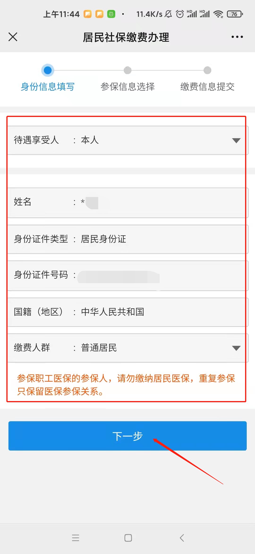 6、参保信息选择。