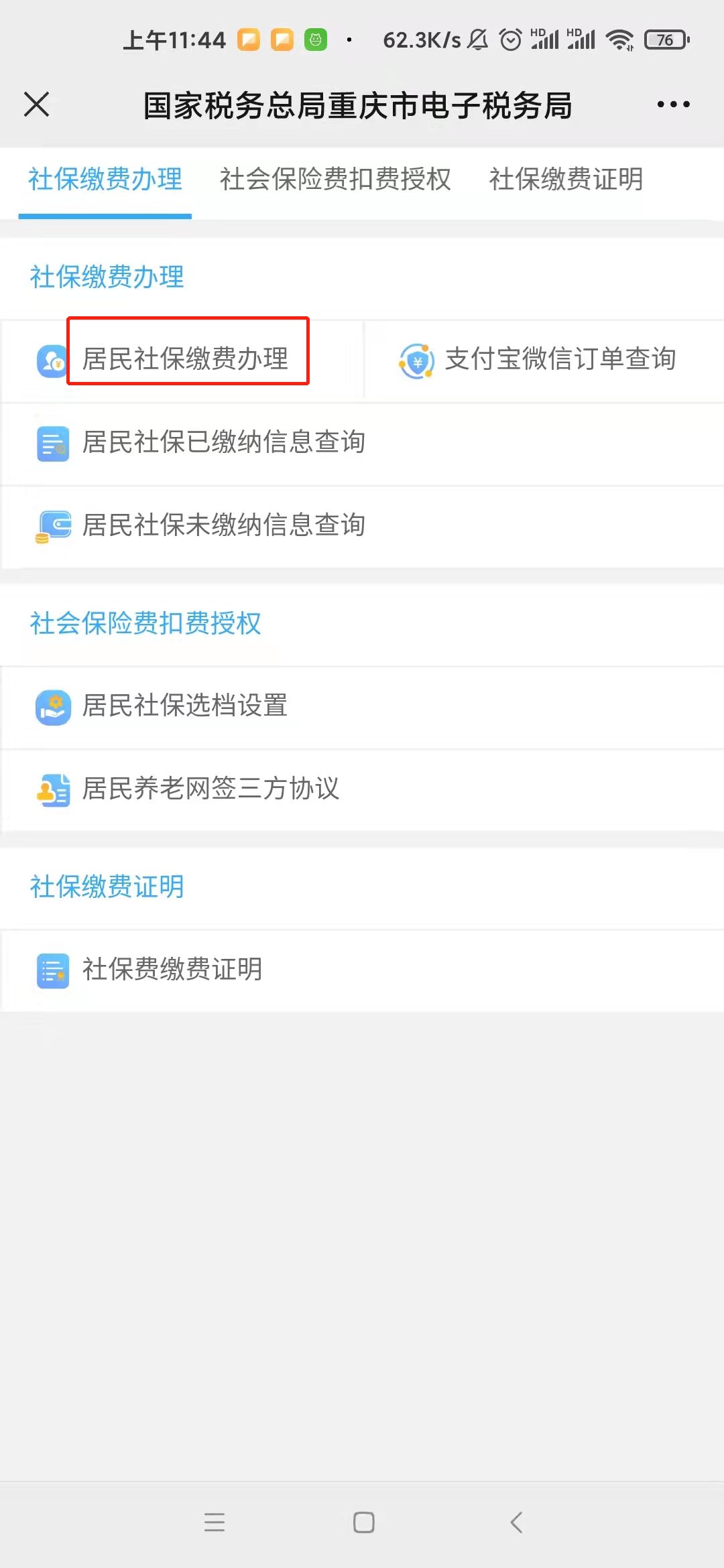 4、选择“居民社保缴费办理”。
