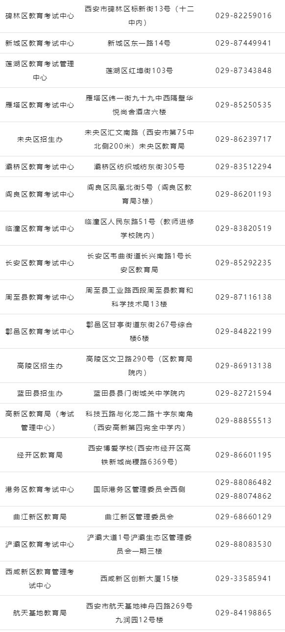 三、2023年西安市高考报名各县区办公地址及咨询电话
