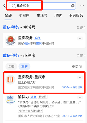 1、在支付宝里,搜索“重庆税务”,进入“重庆税务”市民中心。
