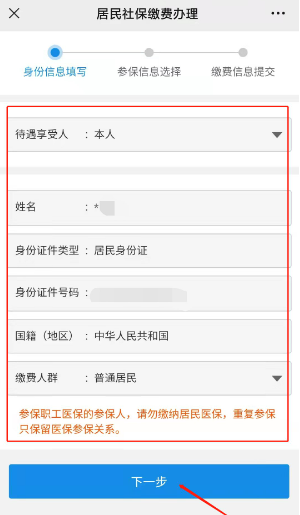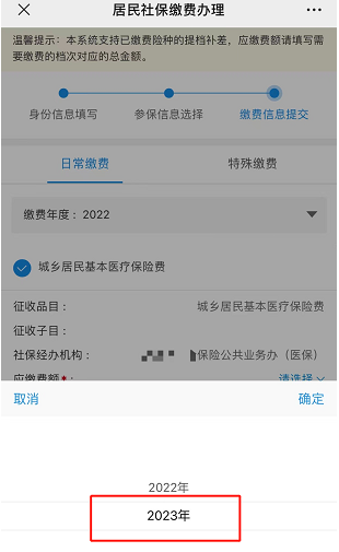 第三步:和微信步骤一样,依次填报信息,核对缴费信息,缴费年度选择2023年,而后进行缴费信息提交。可以为本人或代他人进行缴费。