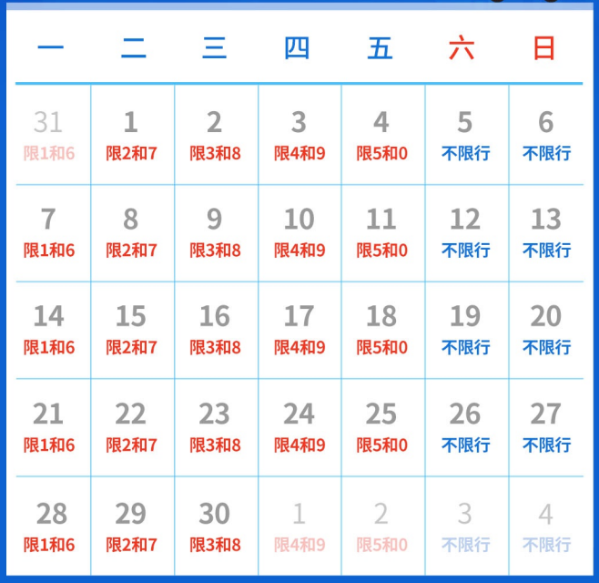 2022石家庄11月限行尾号日历 2022石家庄11月限行尾号日历表