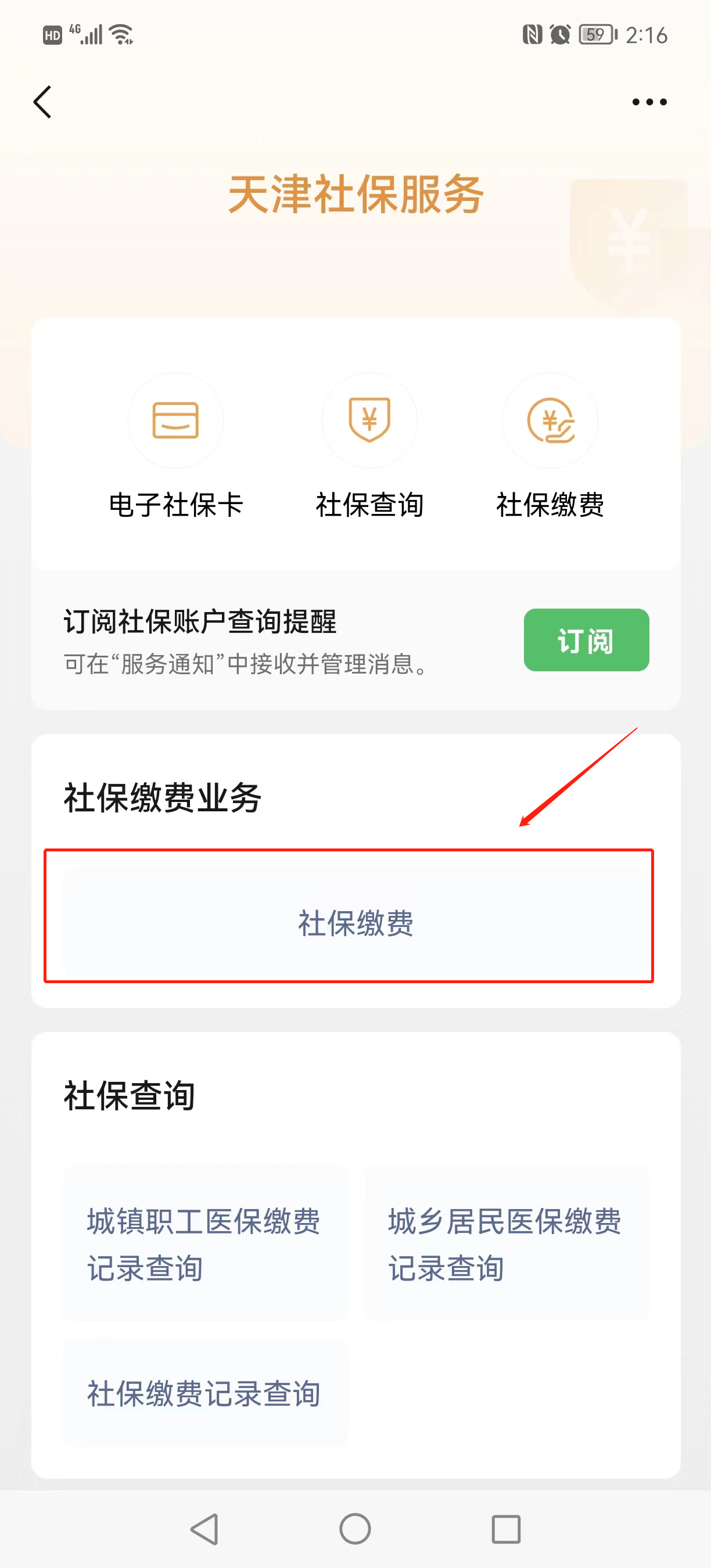 4、点击“社保缴费”;