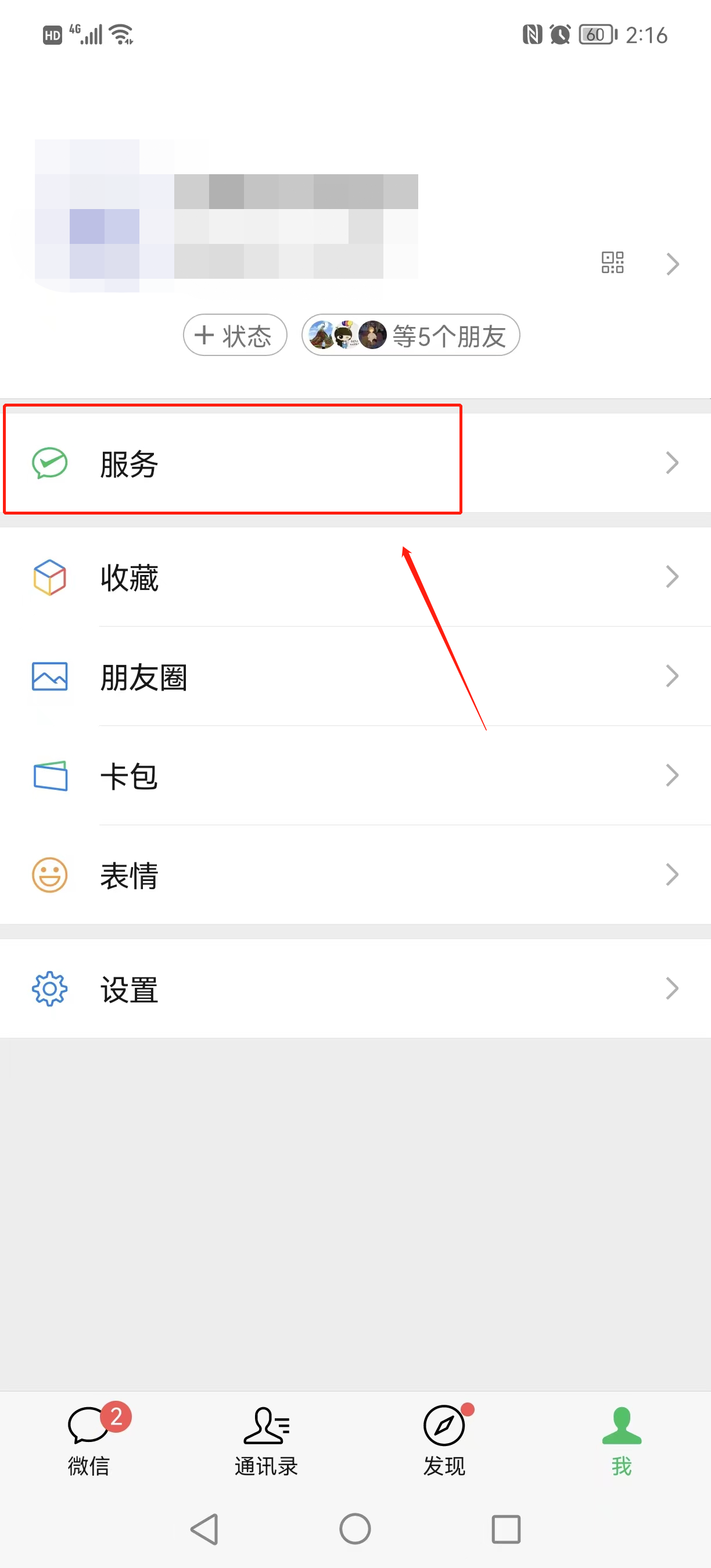 1、打开微信APP,找到“服务”;