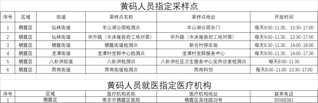 南京栖霞区黄码人员核酸检测点和医疗机构:点击查看