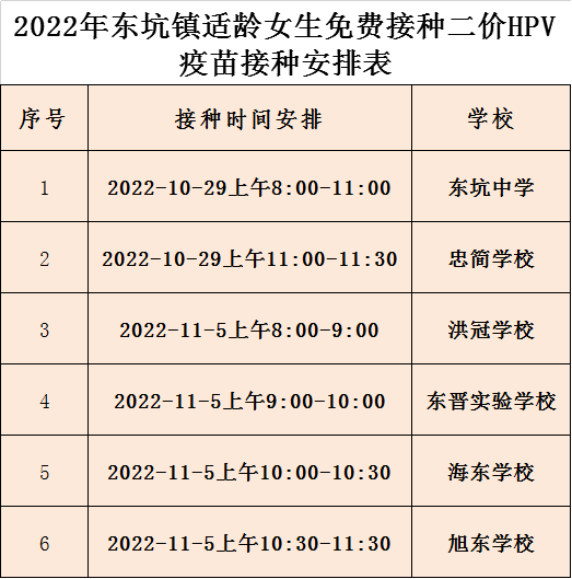 东莞市东坑镇适龄女生HPV疫苗免费接种工作将于10月29日正式启动接种