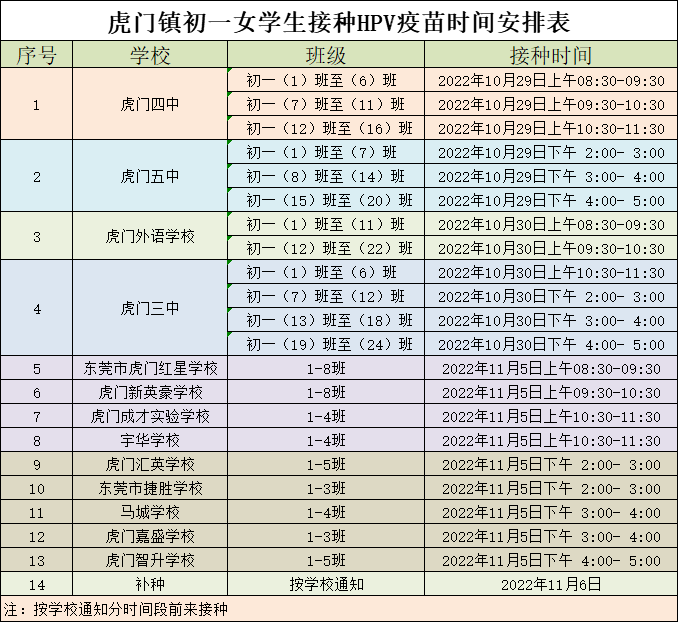 虎门镇各初中具有东莞市学籍、2022年9月起新进入初中一年级、未接种过HPV疫苗且未满14周岁的女生。(只限虎门镇辖区内的初一女生,外镇学校的初一女生请到学校所在地定点接种门诊接种。)