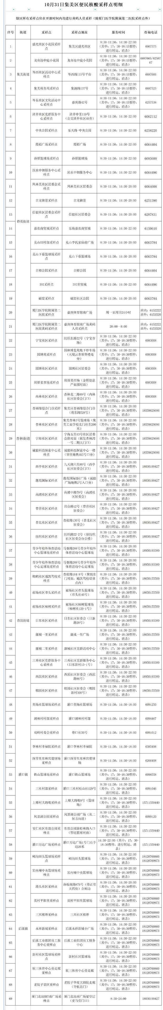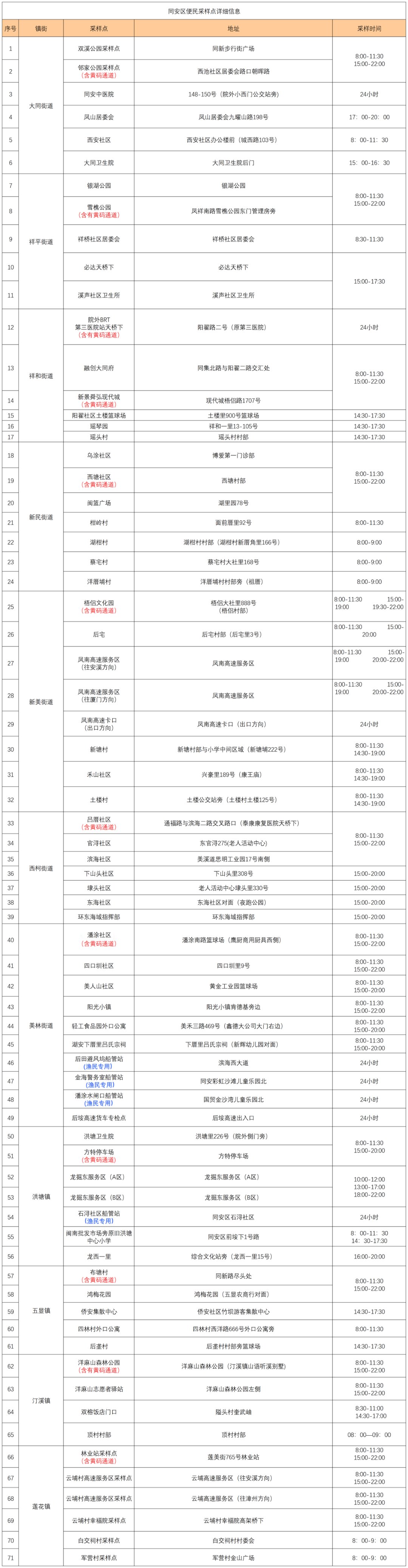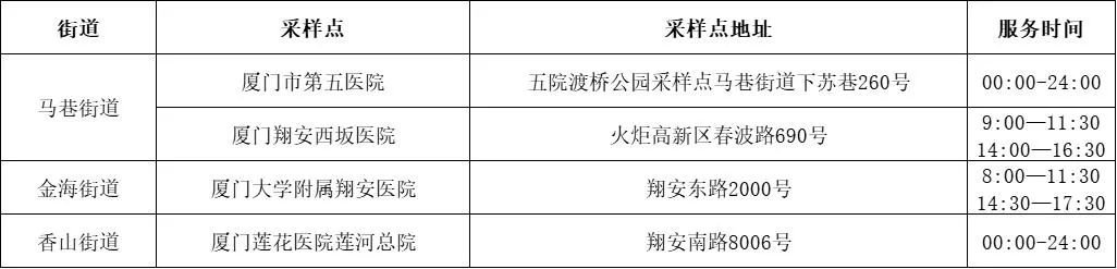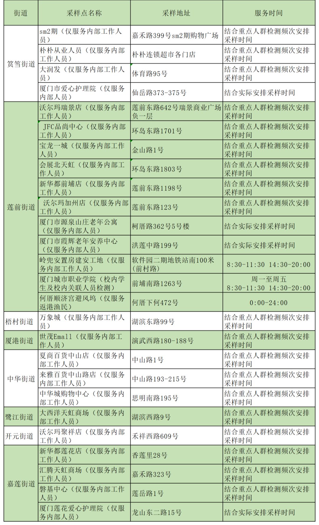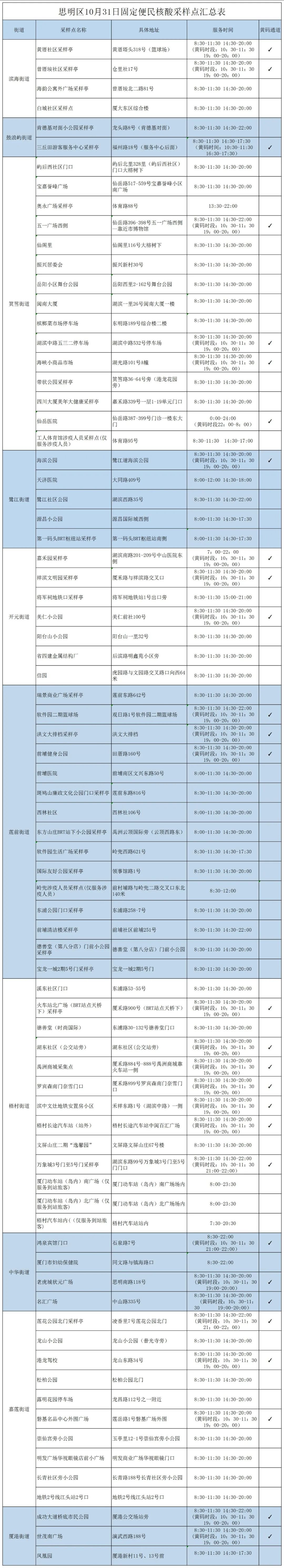 思明区(点击可看大图)采样时间为早上8:30-11:30,下午14:30-20:00。
