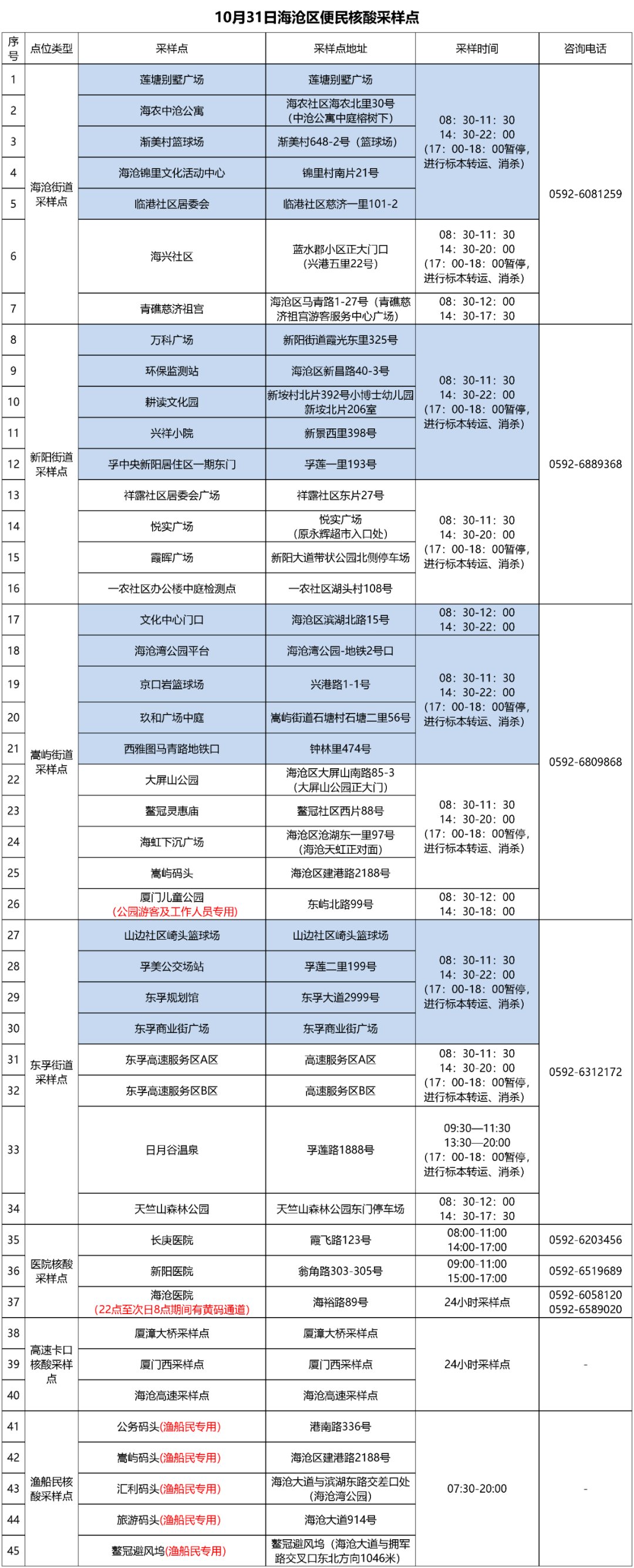 2022年10月31日厦门核酸检测点汇总 厦门核酸检测报告时间