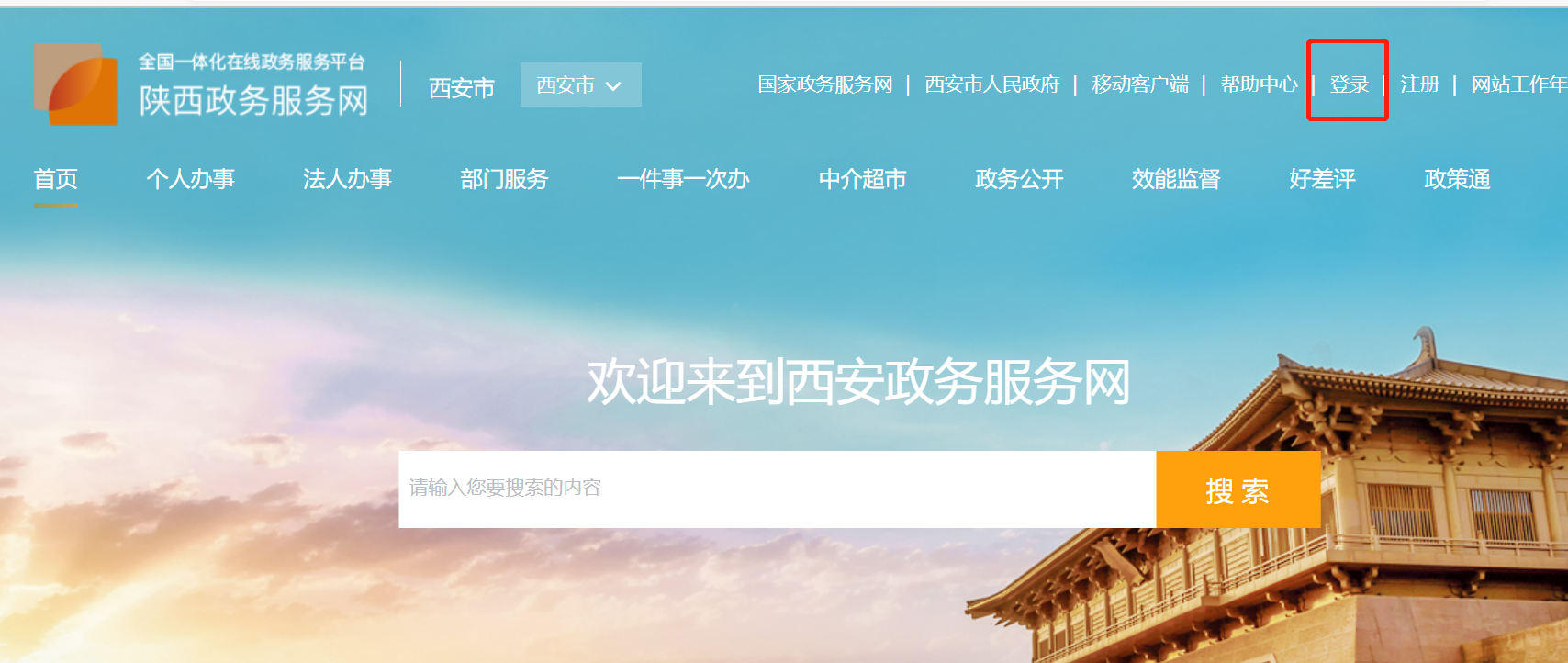 1、进入陕西政务服务网(西安市)官网,登录