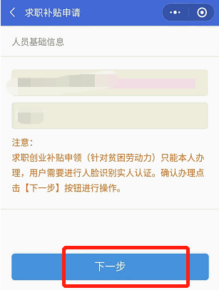 第二步:先进行登录,登录后按照页面提示完成人脸识别,然后在线填写贫困劳动力求职创业补贴申报信息。