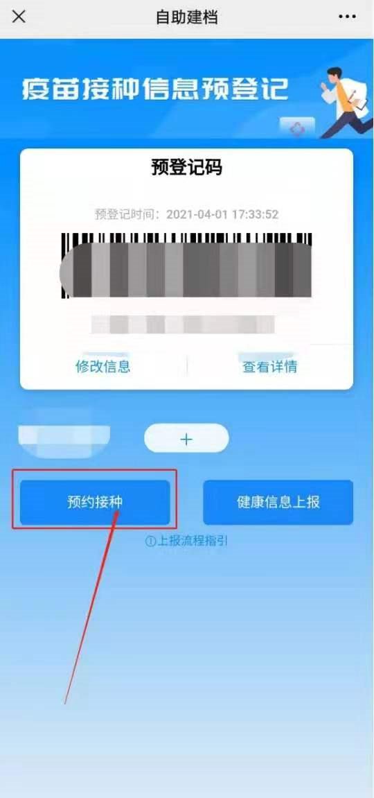 3、然后进入,点击登记码下方的“预约接种”;最后截图保存即可