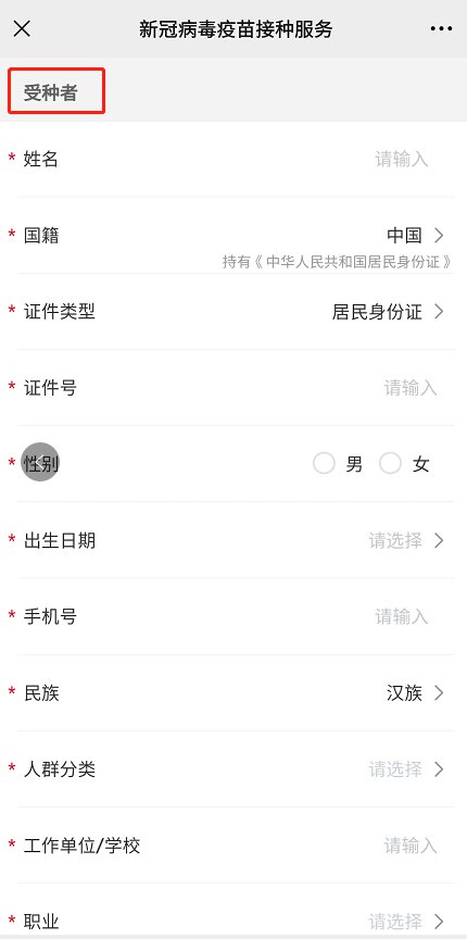 1.关注健康八桂或广西疾控公众号后,选择疫苗接种预约,依次阅读“新冠疫苗接种告示”、“用户隐私条款”,并进行姓名、证件号、职业等个人信息的预登记。