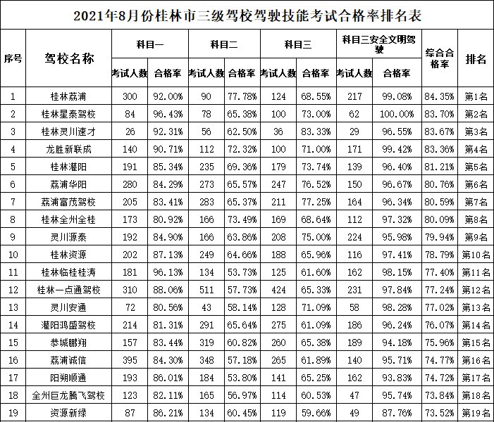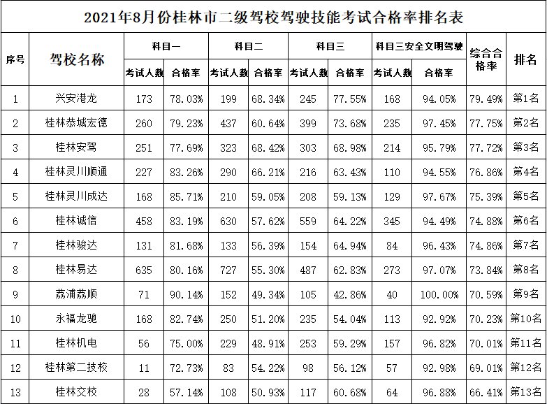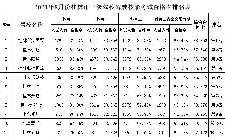 桂林驾校通过率排名(桂林驾校通过率排名第几)