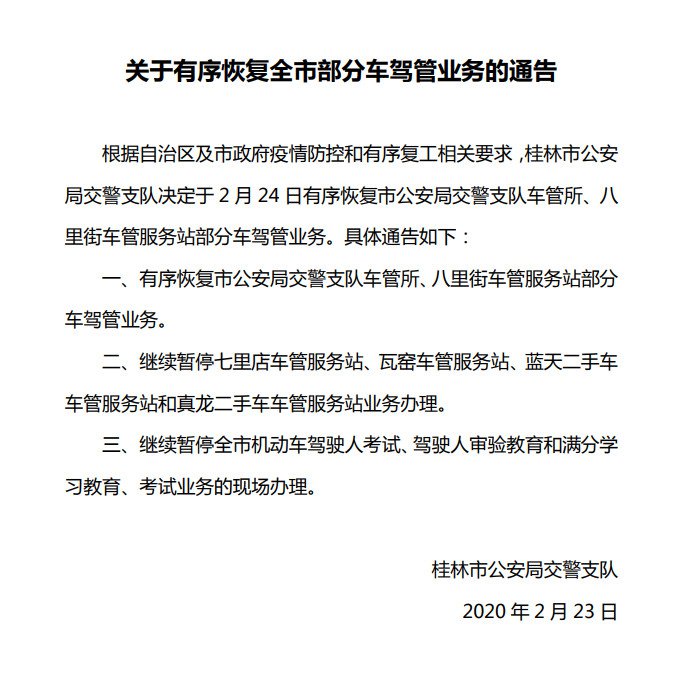 桂林交管窗口恢复部分业务通告 桂林交通安全综合服务管理平台