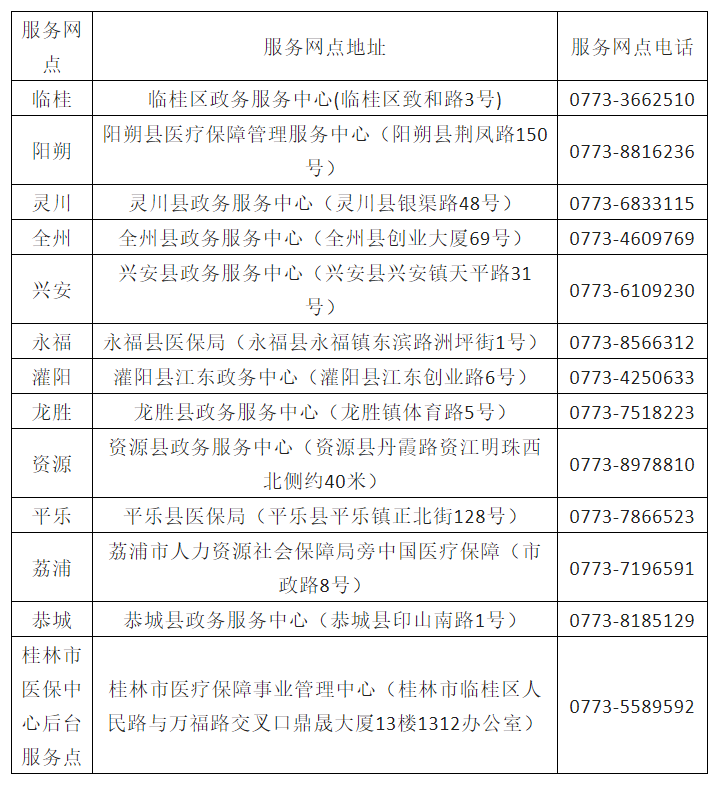 桂林市各区县大病保险合署办公服务网点信息: