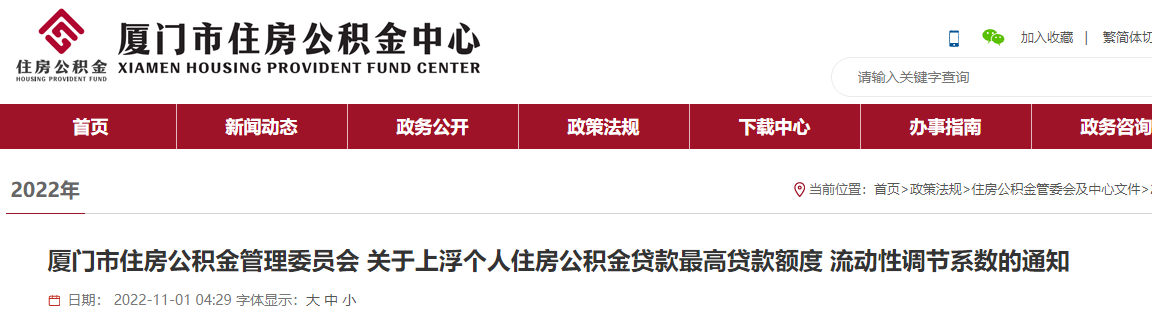2022厦门公积金流动性调节系数上调通知