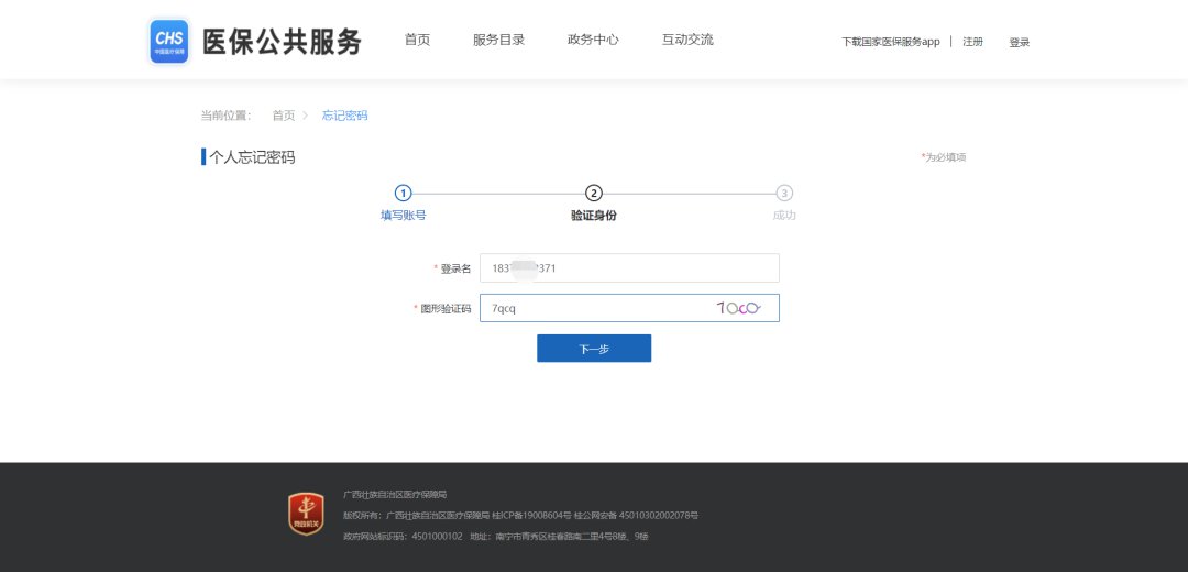 2、填写账号信息:登录名(即登录账号)、图形验证码等信息。