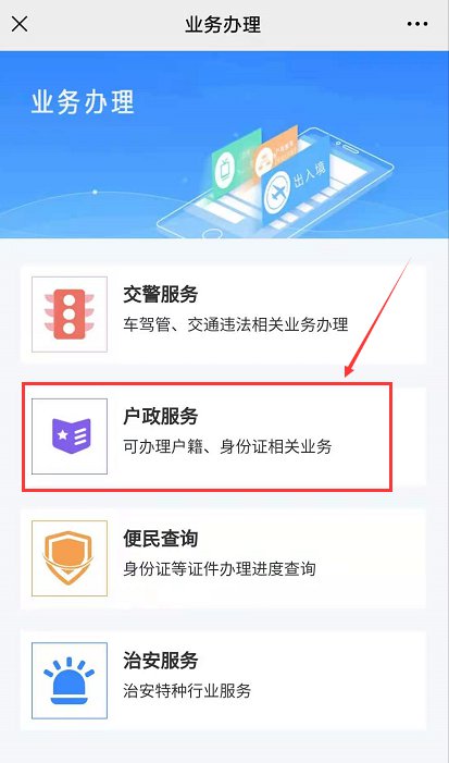 【第三步】:点击“户政服务”(办理户籍、身份证相关业务)