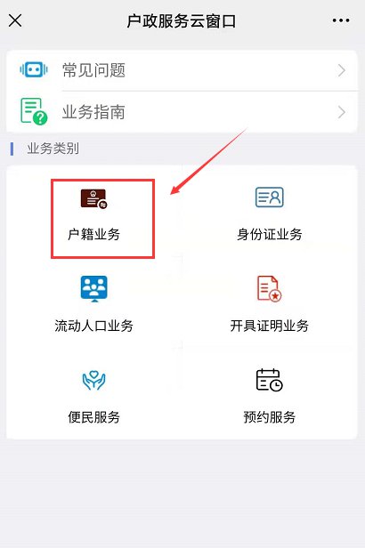 【第四步】:进入户政服务云窗口后,选择“户籍业务”