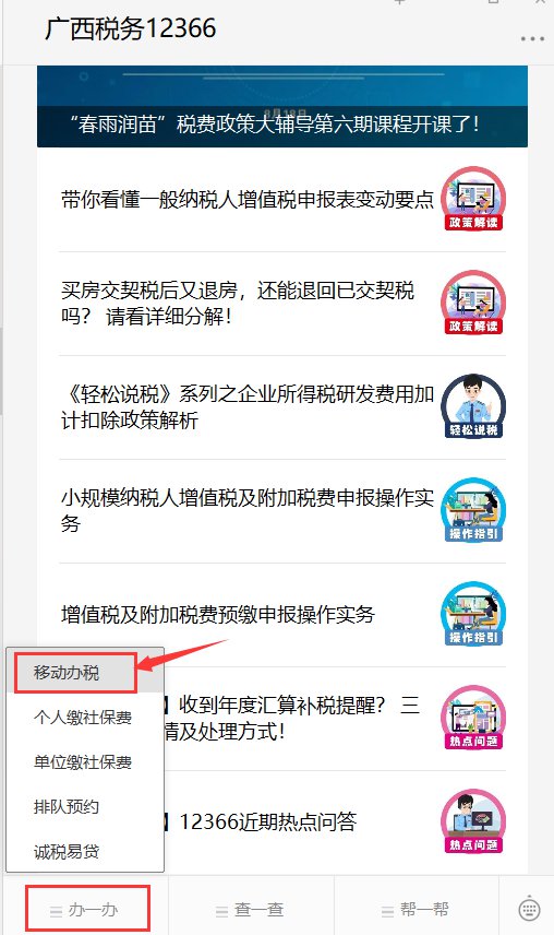 第二步:点击菜单栏左下角“办一办”——“移动办税”;