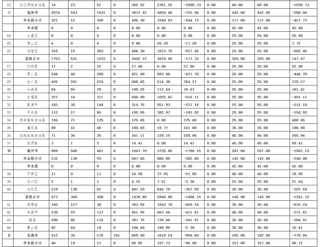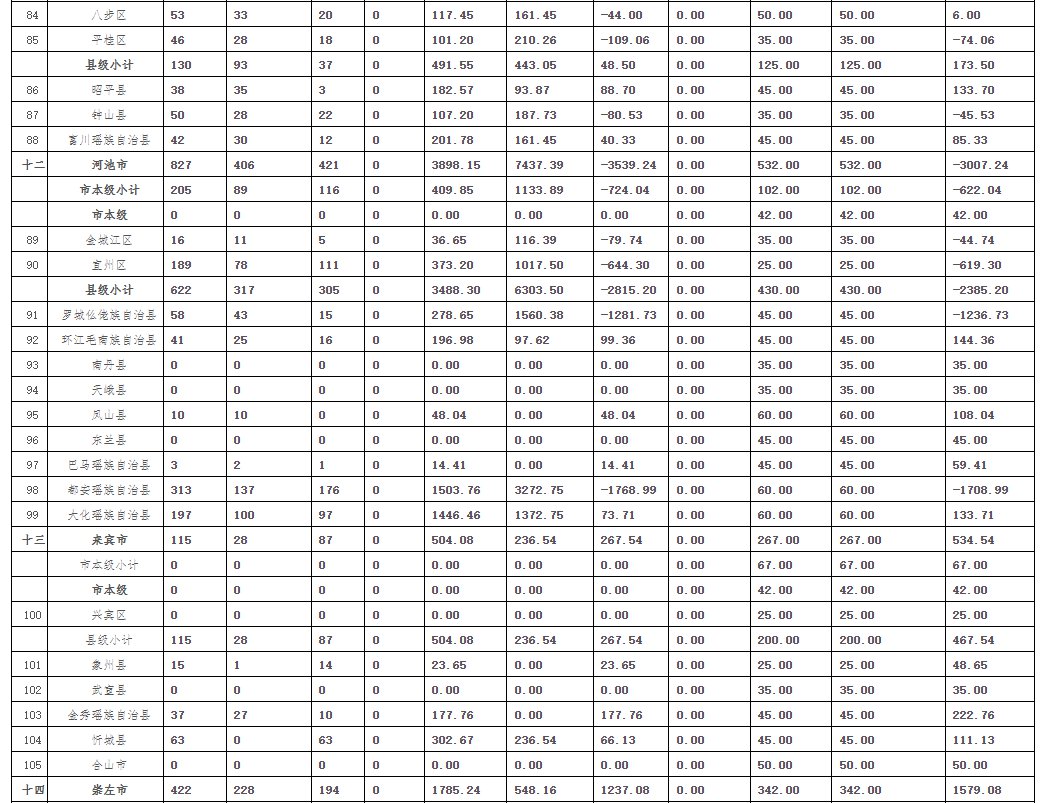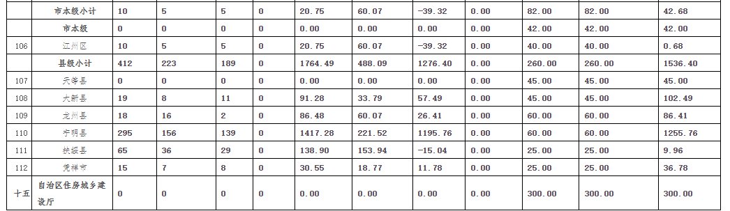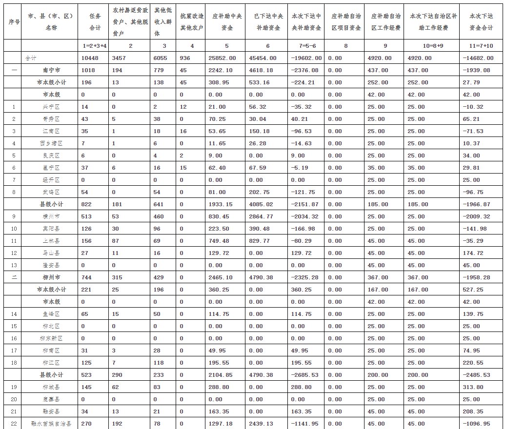 2021年广西农村危房改造中央和自治区补助资金调整表(单位:户、万元)