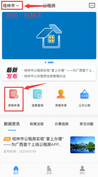 第三步:进入首页,定位为“桂林市”,点击“资格申请”,输入相关信息即可。