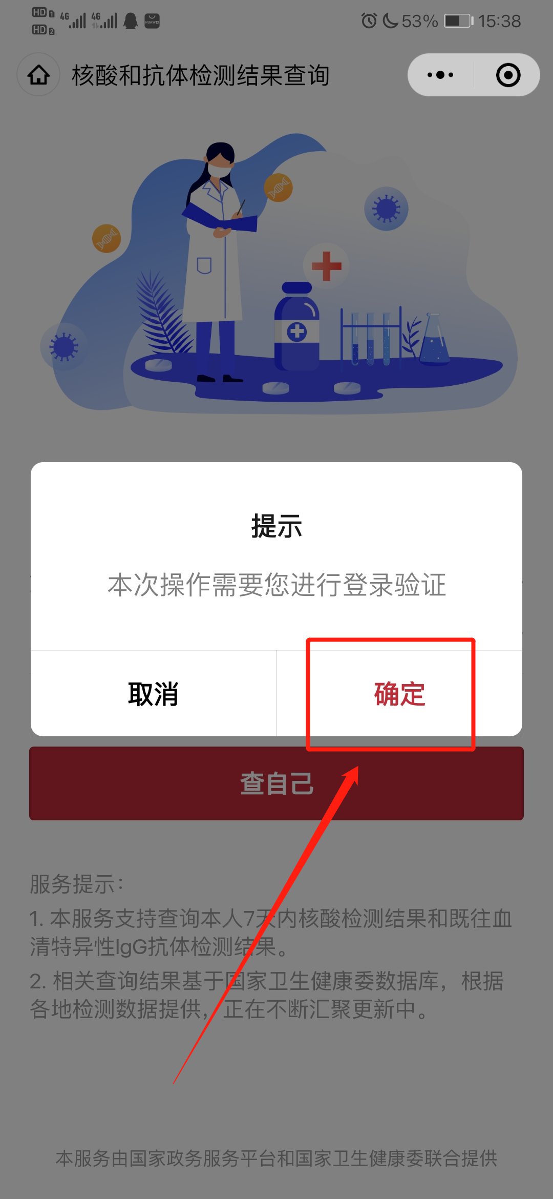 2.使用微信搜索“桂林核酸结果查询”,随后点击核酸检测结果查询服务中的“前往查询”(如下图所示);