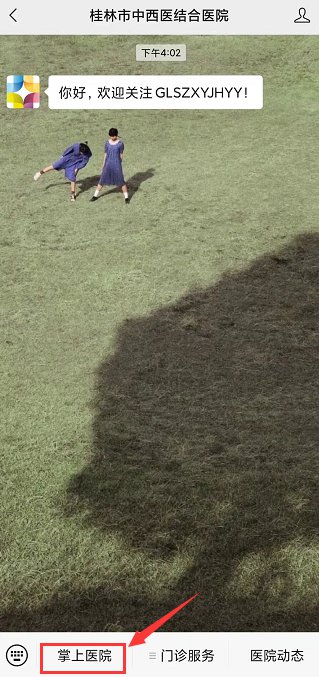 第一步:微信搜索公众号“桂林市中西医结合医院”,关注后点击菜单栏左下方“掌上医院”;