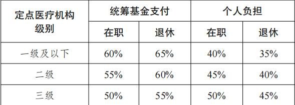 在一个参保年度内,参保人员在门诊就医发生的属于基本医疗保险支付范围的医疗费用,在统筹基金起付标准以上、支付限额以下的,由统筹基金和个人按下列比例分别负担:
