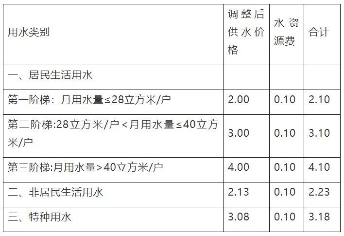 一、供水价格调整时间自2021年9月1日抄见用水量执行。
