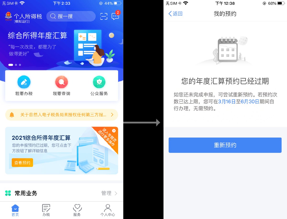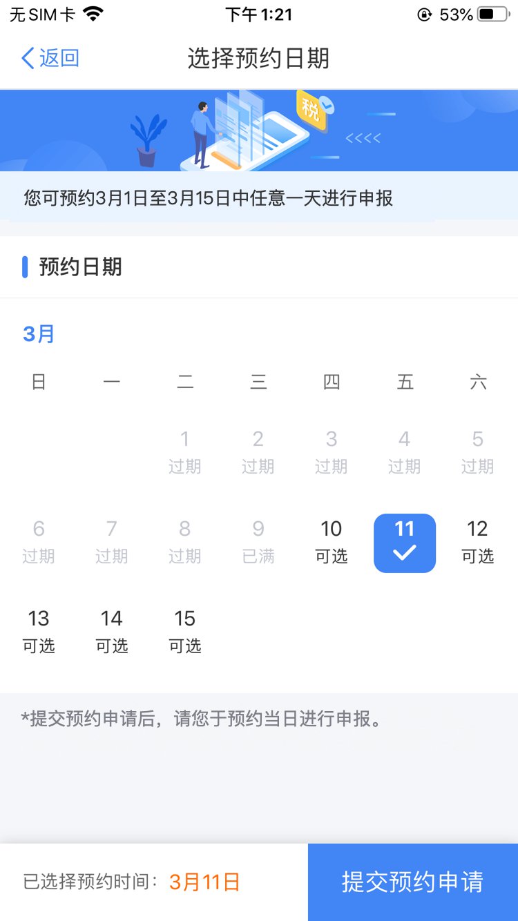 若您未在所选日期的当日申报2021综合所得年度汇算,您的预约将在次日过期。